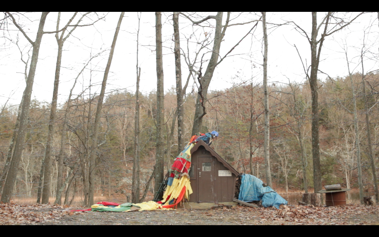 Public performance, Philadelphia, PA and Vienna, Austria 2013-14Documentation of a public performance, Vienna, Austria, 2014. A displaced parachutist explores the social geography of various urban environments while searching for the action that propelled her into the space she walks.
