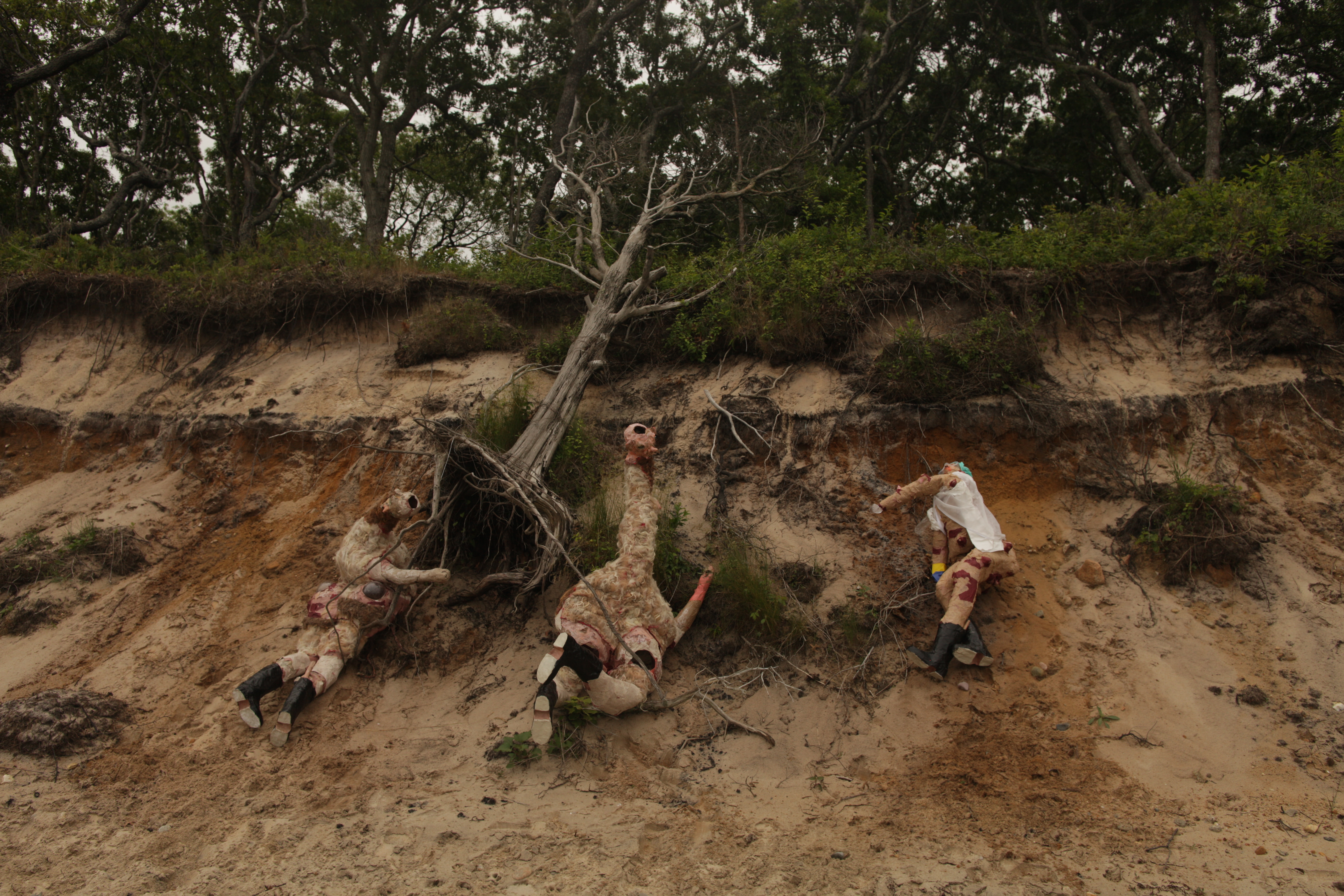 The shape of these bodies--captured on film--cause speculation on how the landscape might change and how the anatomy and physiology of our bodies may need to adapt and change to withstand environmental elements. These forms draw from the past while projecting onto the future, reflecting our own emotional state of unknowing while asking: "what makes something human?".